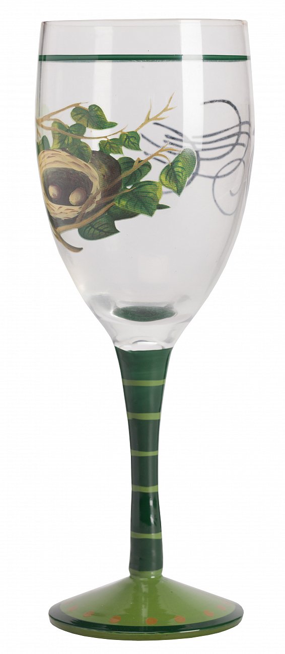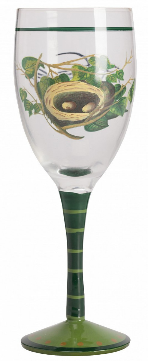 Изумительный стильный бокал для вина Caress замечательно подойдет для любого повода, будь то торжественный случай или просто домашний ужин. Выполненный из прозрачного венецианского стекла на высокой изящной зелёной ножке, украшенный рисунком птичьего гнездышка в ветвях дерева, он станет достойным украшением вашего стола. Объем 200 мл.