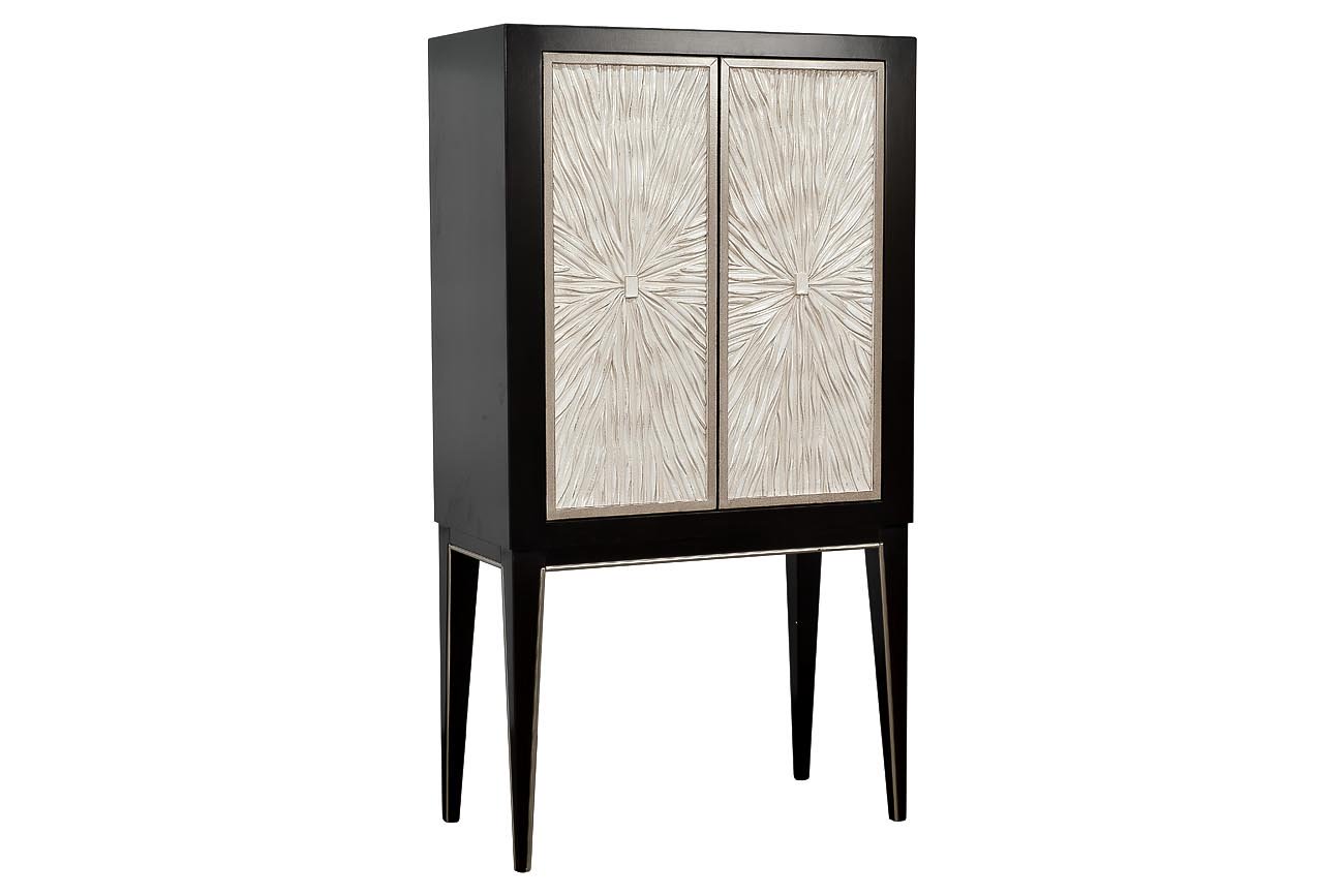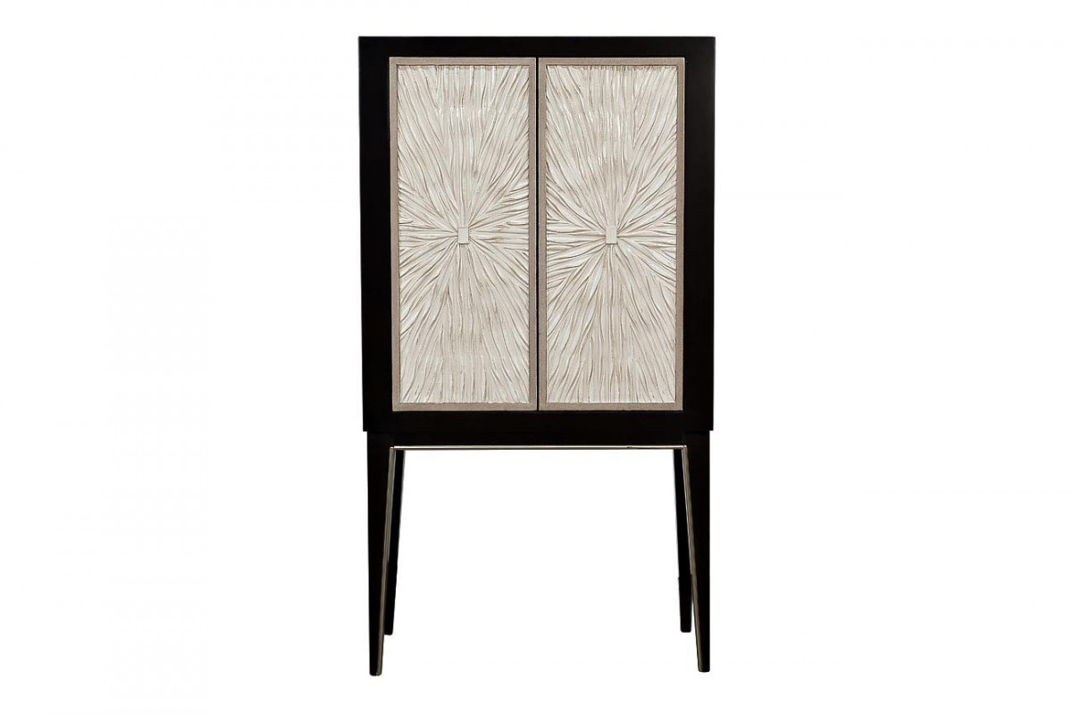 Дизайнерский барный шкаф насыщенного оттенка кофе эспрессо с дверцами цвета шампанского украсит вашу столовую или гостиную. Уникальное покрытие фасада, выполненное вручную по авторской технологии, имитирует мягкие переливчатые складки ткани. Необыкновенное сочетание натурального дерева, металла и полимеров, изысканные цвета, тщательная отделка и многослойная прокраска вручную каждой детали делают шкаф настоящим произведением мебельного искусства. Три полки позволяют удобно разместить напитки в соответствии с классификацией. Барный шкаф прекрасно впишется в интерьер в классическом стиле, ар-деко, богемный шик или фьюжн. У нас вы можете приобрести ТВ-тумбу и комод арт. ART-2921-TV и арт. ART-2921-SA из этой же коллекции, чтобы меблировать гостиную или столовую в едином стиле.