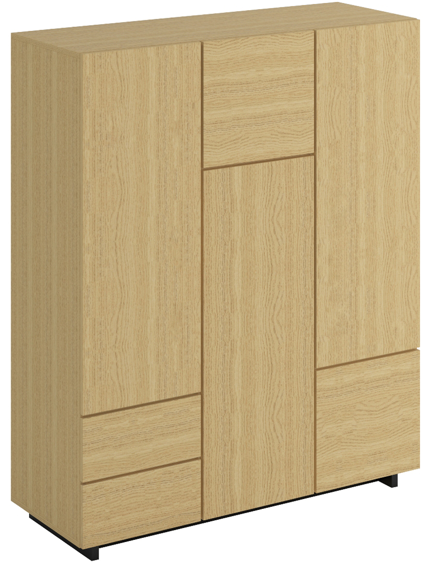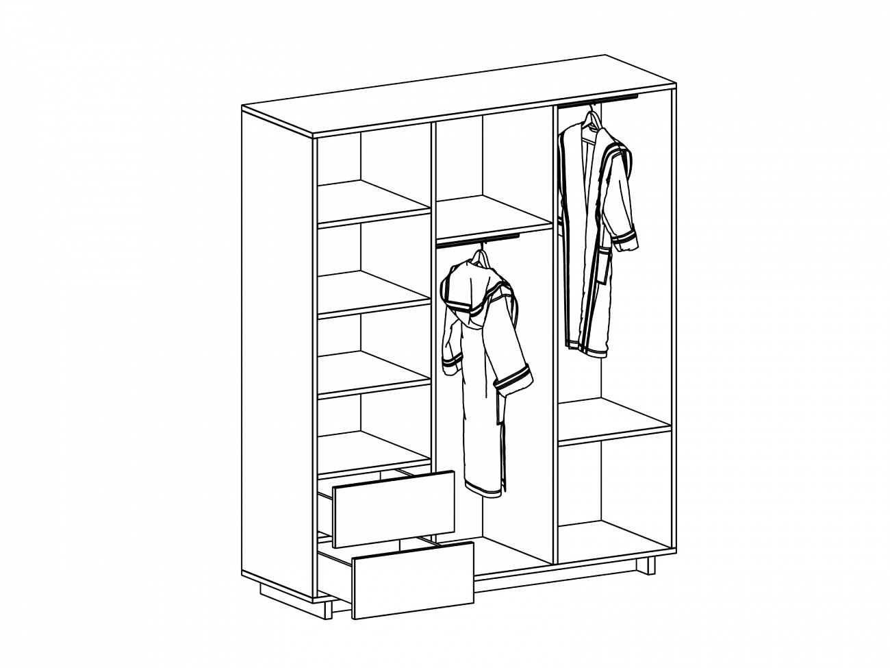 В шкафу два выдвижных ящика, два отделения со штангой для хранения одежды на плечиках, отделение с тремя съёмными полками и два малых отделения для хранения. Дверцы открываются по принципу «нажал-открыл». Рекомендуется крепить к стене.
