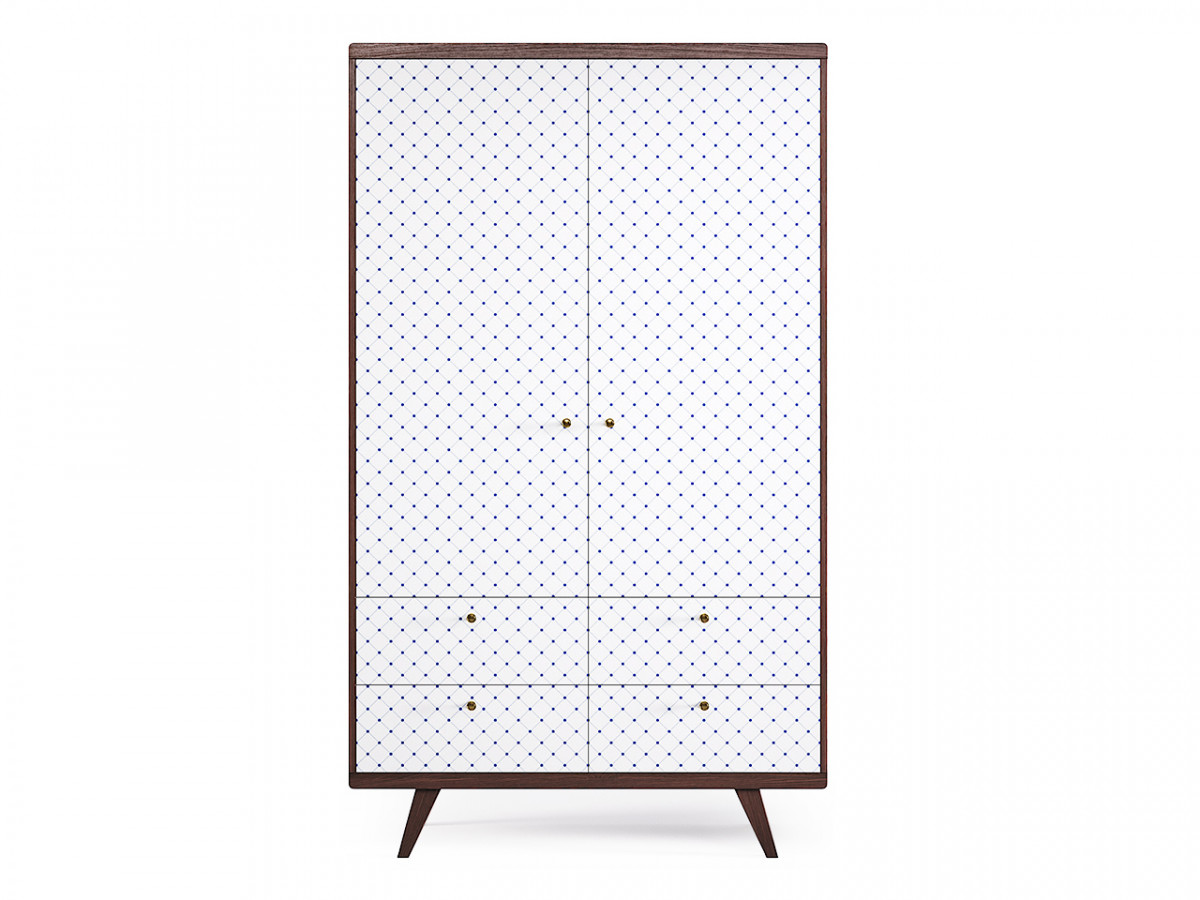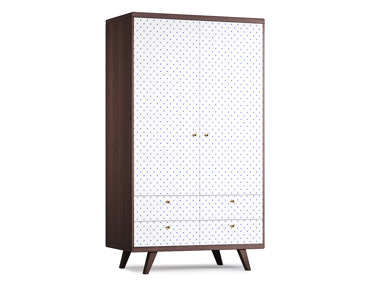 Шкаф Thimon №2 с ящиками дополняет коллекцию изделий The IDEA с принтами на фасадах. Удобно организованное пространство для хранения в верхней секции с переставляемыми полками позволяет разместить длинные вещи на плечиках, а четыре выдвижных ящика способны обеспечить порядок в остальных вещах. Благодаря качественной фурнитуре дверцы и ящики шкафа закрываются без усилий, а утонченные ручки цвета состаренной латуни привносят лаконичный акцент.Особенности.Стильное решение для размещения полноценного гардероба.Прочные и экологичные детали наполнения и усиленная конструкция ящиков из ЛДСП.На ящиках установлены направляющие Blum скрытого монтажа с доводчиками.Все фасады регулируются в трех плоскостях для аккуратного выравнивания узора гравировки.Задние ножки установлены с отступом для плинтуса.Предусмотрен крепеж к стене.Легко установить любые ручки-кнопки.Можно заказать фасады с покрытием натуральным шпоном дуба и без принта.Материалы.Основание – массив дуба.Корпус – МДФ, натуральный шпон дуба.Фасады – МДФ.Ящики, полки и перегородки – ЛДСП, светло-серый.Фурнитура – петли с плавным закрыванием, направляющие Blum с доводчиками, стальные крепежные элементы. Покрытие – тонировка, матовый лак, эмаль, принт.